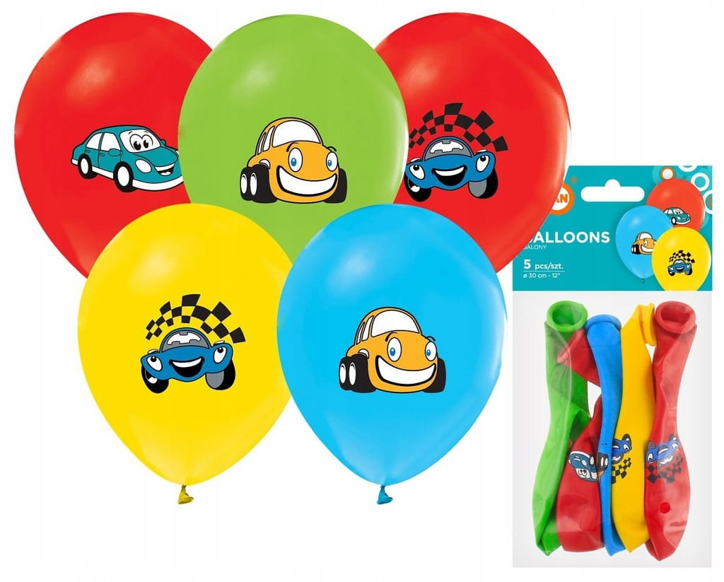 Balony Samochody 12"/ 5 szt. URODZINY