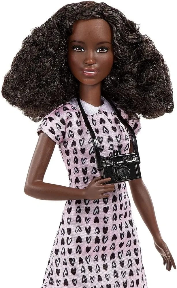 Barbie® Fotografka ma drobna figurę i ubrana jest w uroczą sukienkę z nadrukiem w serduszka oraz sandałki, idealne do codziennych sesji fotograficznych. W zestawie znajduje się również szczeniaczek i aparat fotograficzny, dzięki którym lalka może od razu rozpocząć sesję zdjęciową.