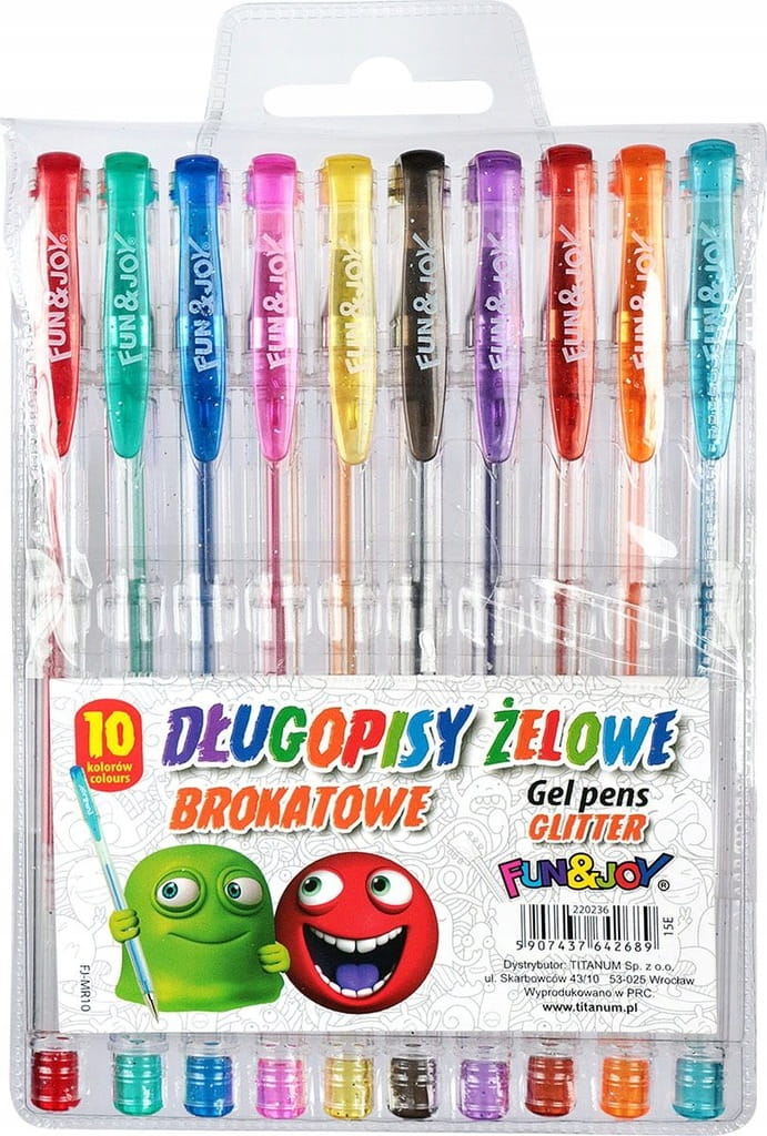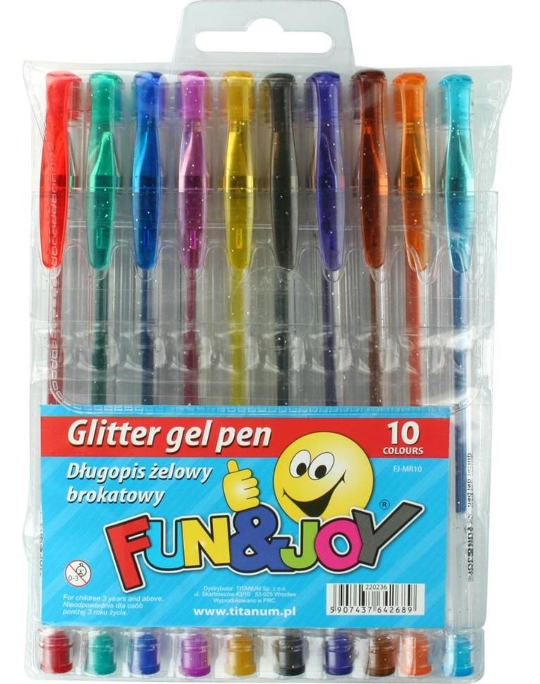 DŁUGOPISY ŻELOWE FUN&JOY BROKATOWE 10 KOLORÓW