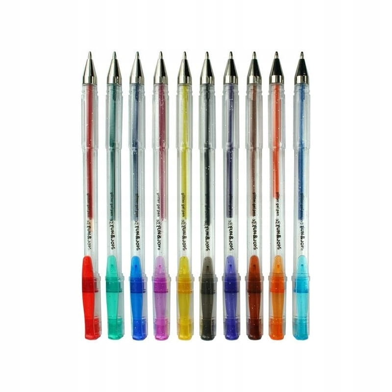 Zestaw 10-ciu długopisów żelowych z efektownym brokatowym wkładem. Doskonały wybór dla wszystkich osób ceniących sobie jakość oraz preferujących miękkie, płynne pisanie wydajnym długopisem. Dzięki zastosowaniu tuszu brokatowego nada się doskonale do bogatego zdobienia szkolnych zeszytów oraz podobnych zastosowań - wszędzie tam gdzie chcemy przyciągnąć uwagę.