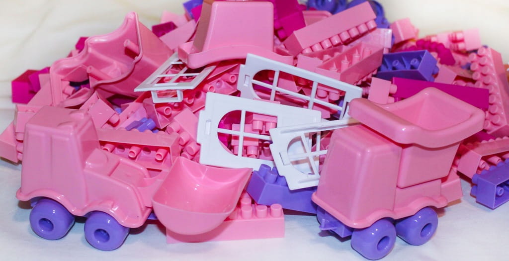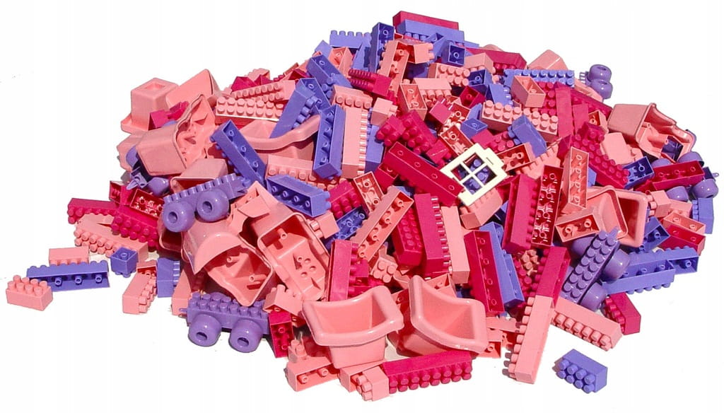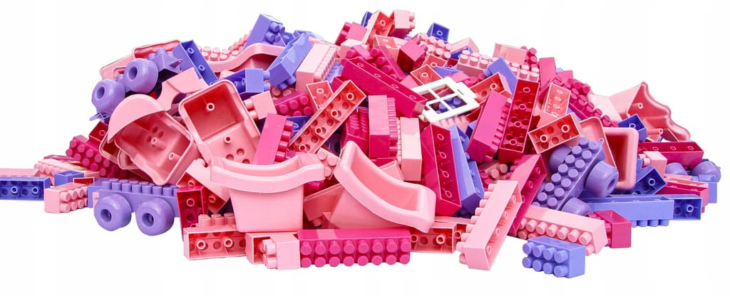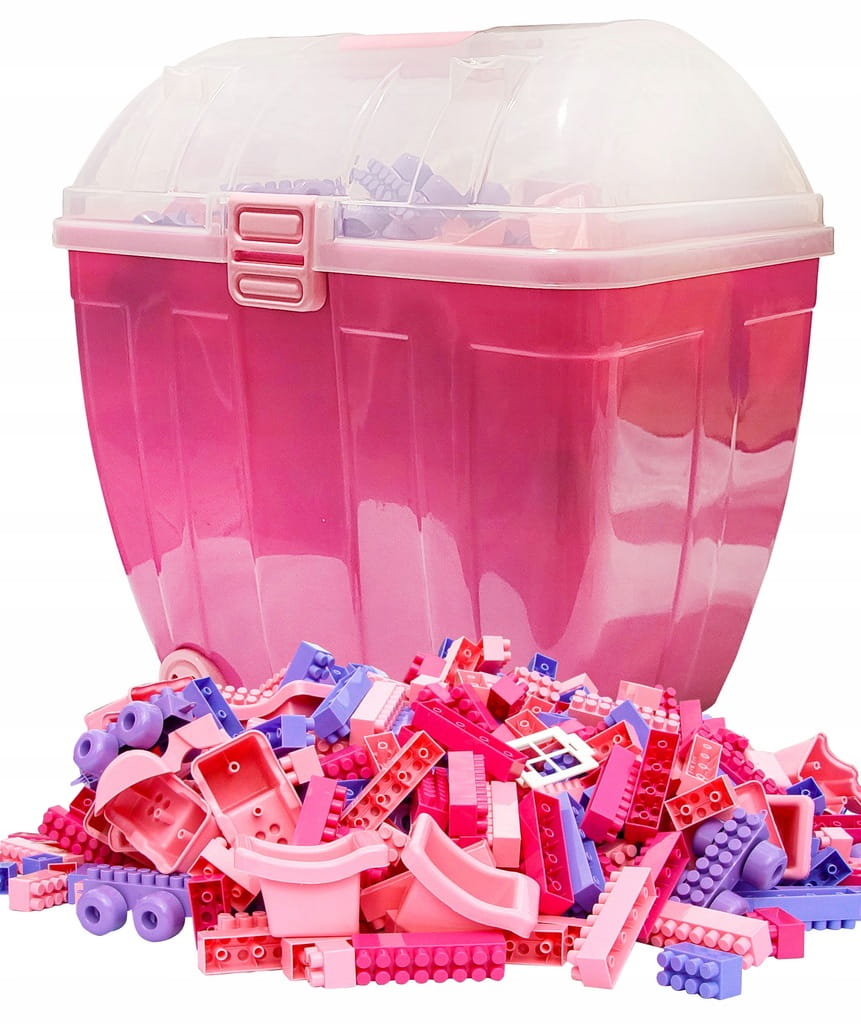 Hemar duży kuferek z klockami K1, ok. 850 elementów w kolorze pastelowe róże