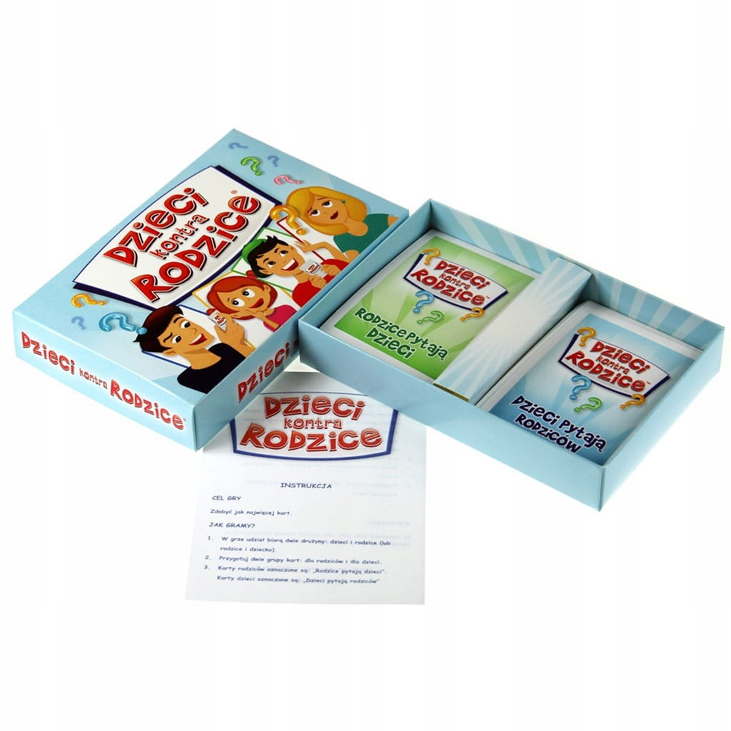 Dynamiczna gra rodzinna, w której dzieci i rodzice rywalizują odpowiadając na wiele interesujących i zabawnych pytań.