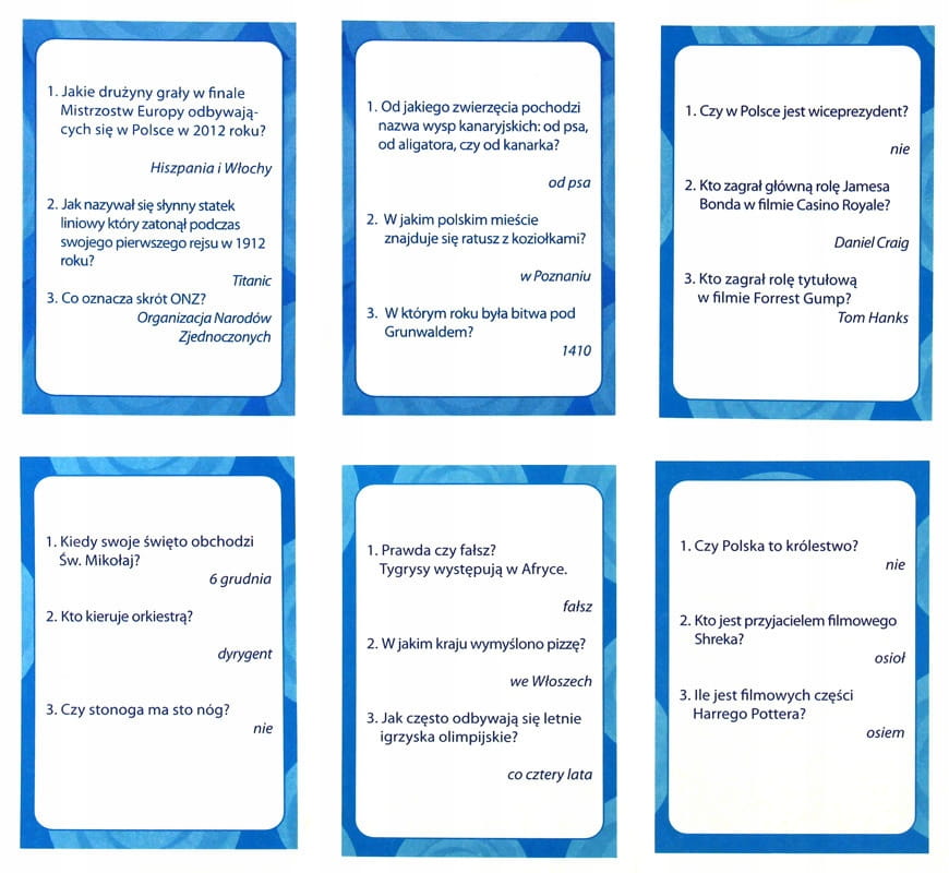 Wygrywa drużyna, która odpowie na więcej pytań.