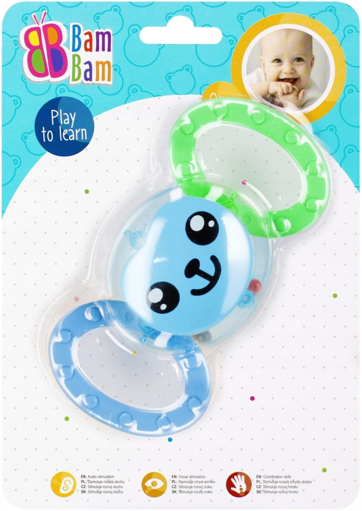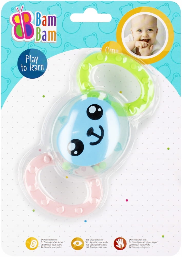 GRZECHOTKA MAŁPKA przeznaczona dla niemowląt od 3 miesiąca życia. Intensywna kolorystyka, zróżnicowana faktura oraz kształt w postaci zabawnej małpki sprawiają, że grzechotka jest doskonałą zabawką edukacyjną.
