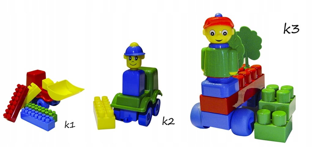 Klocki K2 o szerokości 30 mm przeznaczone są dla dzieci już od 2 roku życia, pozwalają na tworzenie skomplikowanych budowli, nawet całych miasteczek.