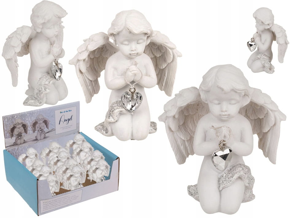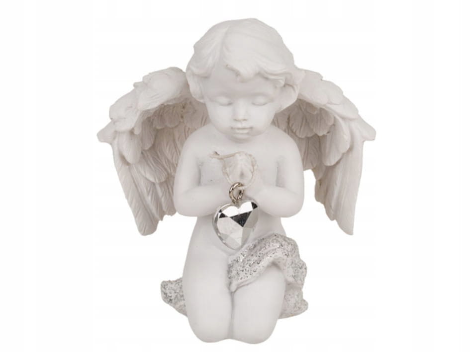 Klęczący Aniołek z kryształowym Sercem Figurka 7,5CM KOMUNIA UPOMINEK