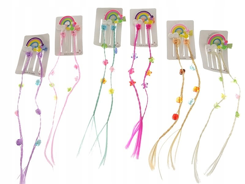 Kolorowe Warkoczyki doczepiane DWA + Spinka Mix kolorów KARNAWAŁ PRZEBRANIE
