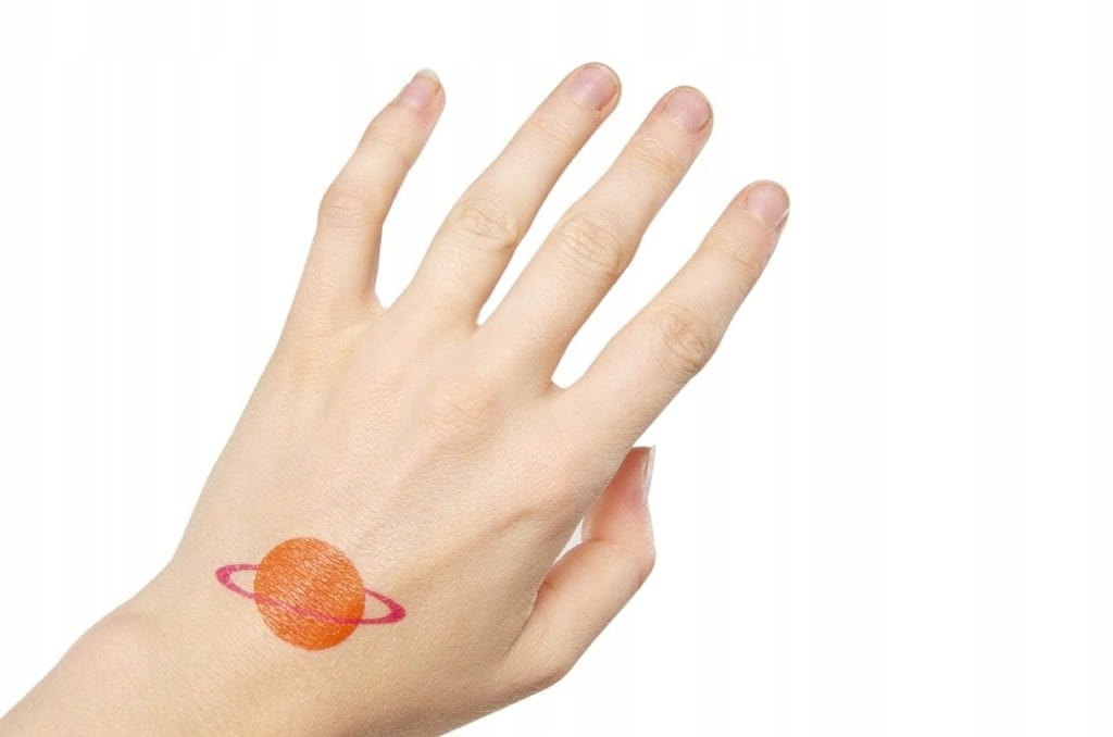 - Kosmiczne tatuaże to idealny sposób na dodanie kreatywnego akcentu do każdej dziecięcej imprezy. Nie tylko urozmaicą zabawę, ale także pozwolą dzieciom poczuć się jak prawdziwi podróżnicy kosmosu. Proste w użyciu i zmywalne, gwarantują bezpieczeństwo i mnóstwo radości.