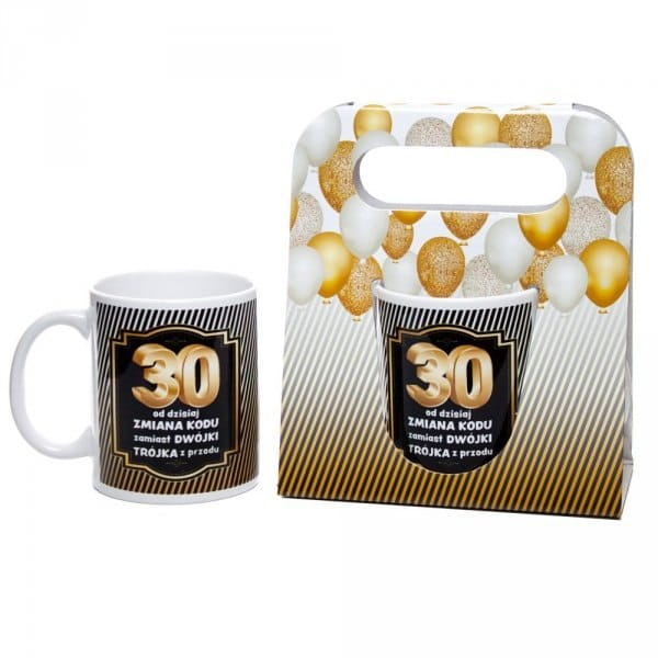 Kubek ceramiczny urodzinowy w ozdobnym opakowaniu 30 URODZINY PREZENT
