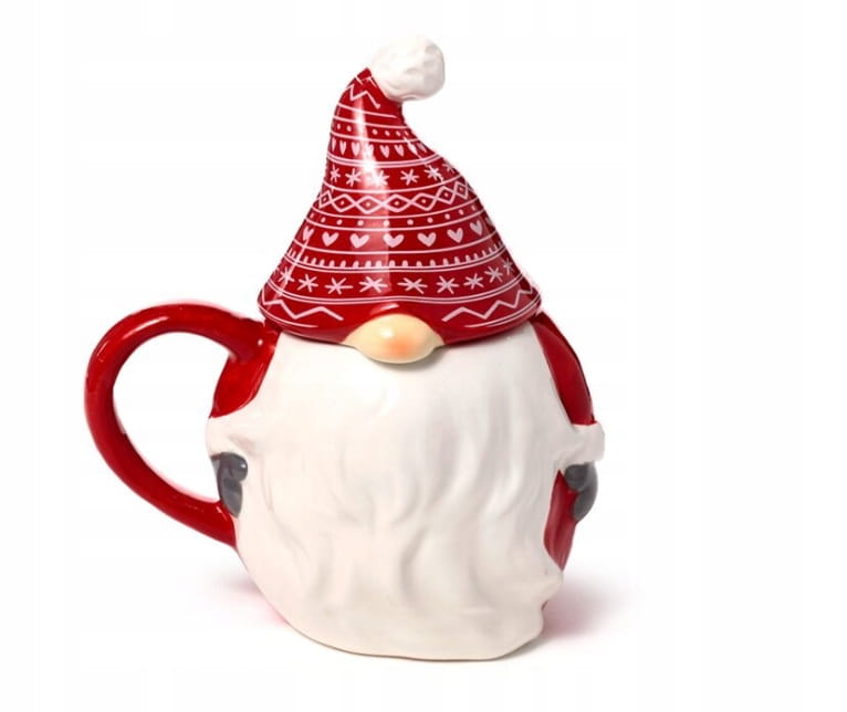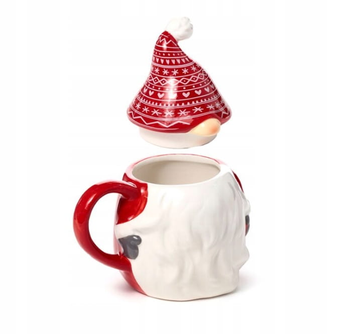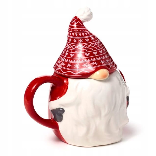 Kubek ceramiczny z pokrywką - Skandynawski Świąteczny Gnom
