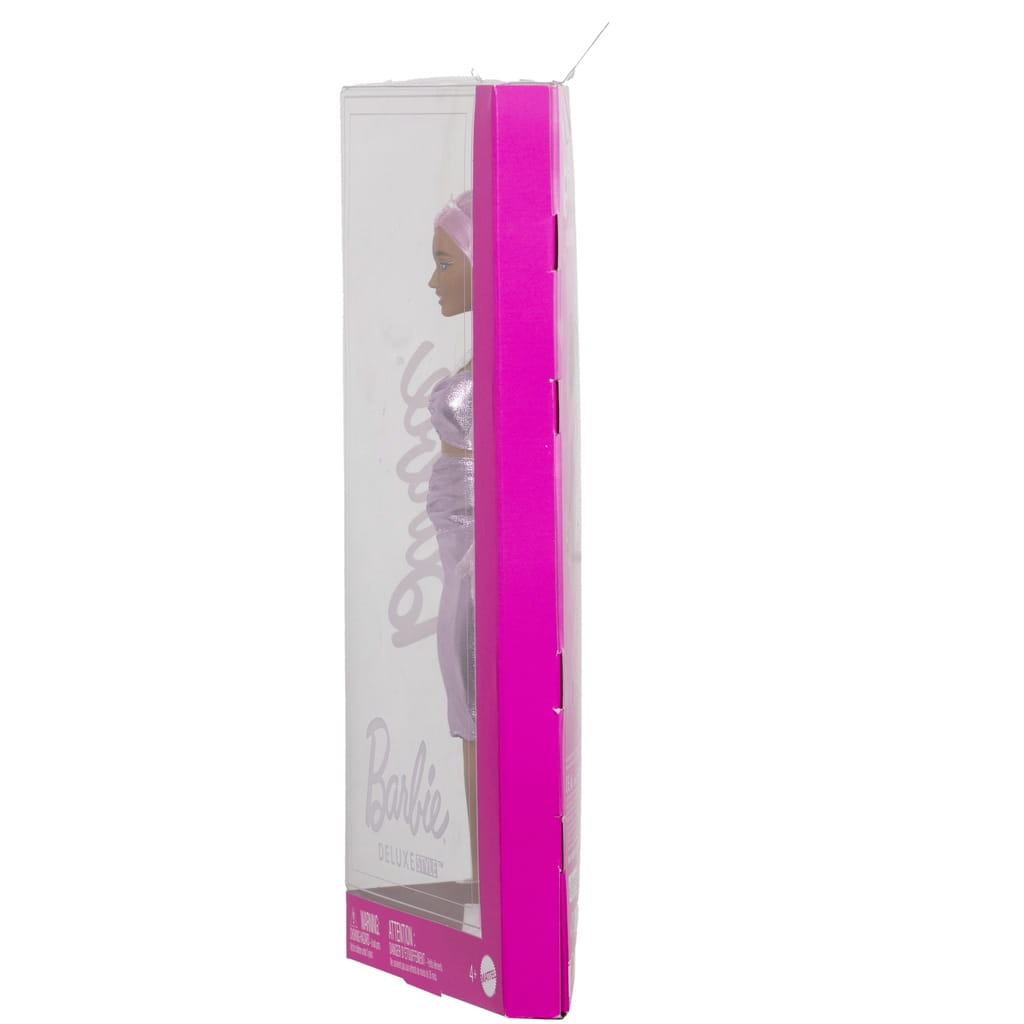 Barbie Deluxe Style Lalka #1 w stroju w stylu Barbiecore, różowe włosy, metaliczna różowa sukienka i akcesoria, w tym aksamitne rękawiczki i torebka