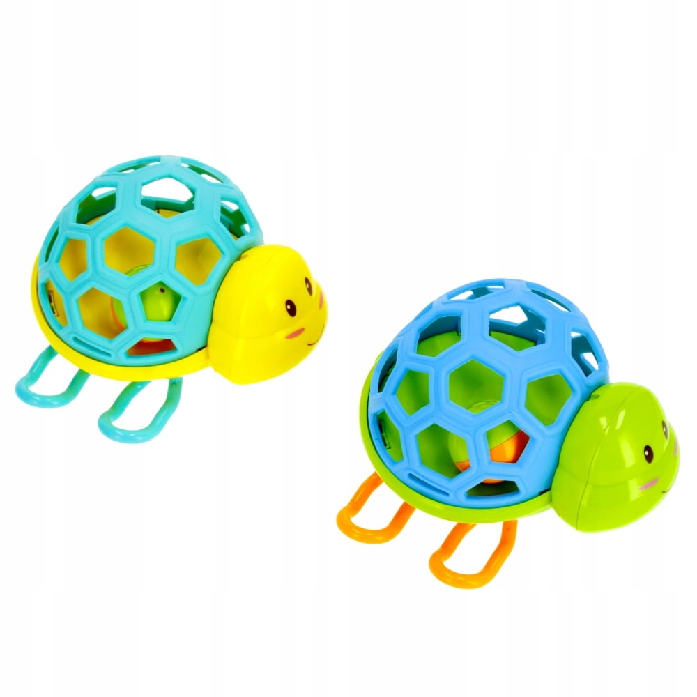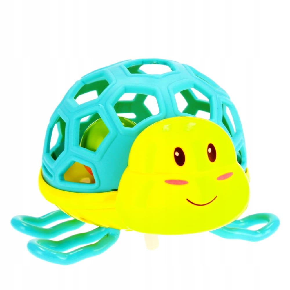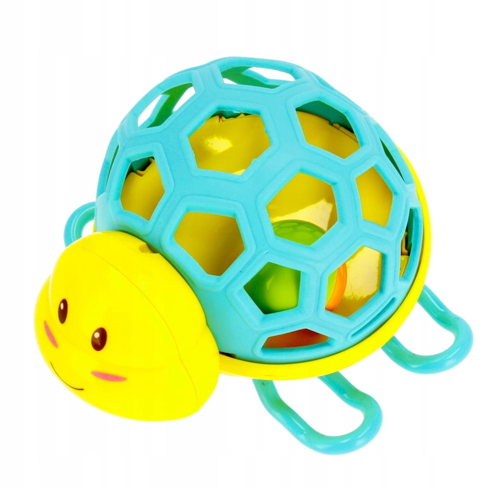 Miękka, Gumowa GRZECHOTKA ZÓŁW zachęci malucha do energicznej zabawy. Potrząsanie zabawki wyzwala charakterystyczne dżwięki towarzyszące odbijaniu się kuli o wnętrze zabawki. Poprzez pchanie, potrząsanie czy turlanie grzechotki dziecko rozwija motorykę i zdolności manualne. Uchwyty z pierścieniami i niezwykle barwnymi koralikami o zróżnicowanej teksturze są doskonałe do nauki chwytania i ćwiczenia zdolności manualnych małych rączek. Umożliwiają ćwiczenie koordynacji i przenoszenia przedmiotu z rączki do rączki.