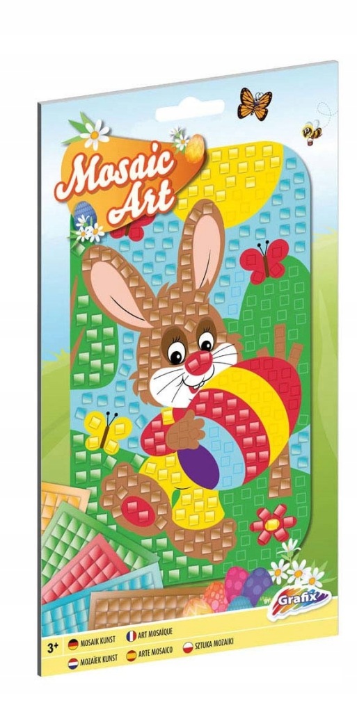 Odkryj pakiet hobby Grafix Easter Mosaic Art A5. Szukasz ciekawej i kreatywnej zabawy dla swojego dziecka? Pakiet hobbystyczny Grafix Easter Mosaic Art A5 zapewnia wiele godzin zabawy i pobudza kreatywność Twojego malucha. Ten pakiet został specjalnie zaprojektowany dla dzieci w wieku 3 lat i starszych, dzięki czemu jest idealny dla młodych artystów. Dlaczego warto wybrać Pakiet Hobby Mozaika Wielkanocna Grafix A5? Pakiet hobbystyczny Mozaika Wielkanocna Grafix A5 to nie tylko pakiet rękodzielniczy. Dzięki temu Twoje dziecko będzie mogło bawić się i jednocześnie uczyć. Ten zestaw zawiera wszystko, czego potrzebujesz do stworzenia pięknej mozaiki inspirowanej radosnymi obchodami Wielkanocy. Co zawiera Pakiet Hobby Mozaika Wielkanocna Grafix A5? Pakiet hobbystyczny Grafix Easter Mosaic Art A5 zawiera następujące elementy: Tablica mozaikowa formatu A5; różne kolorowe kamienie mozaikowe; przejrzysta instrukcja. Dzięki temu kompletnemu zestawowi masz wszystko, czego potrzebujesz, aby od razu zacząć. Twoje dziecko może puścić wodze fantazji i stworzyć piękne dzieła sztuki, które ozdobią dom.