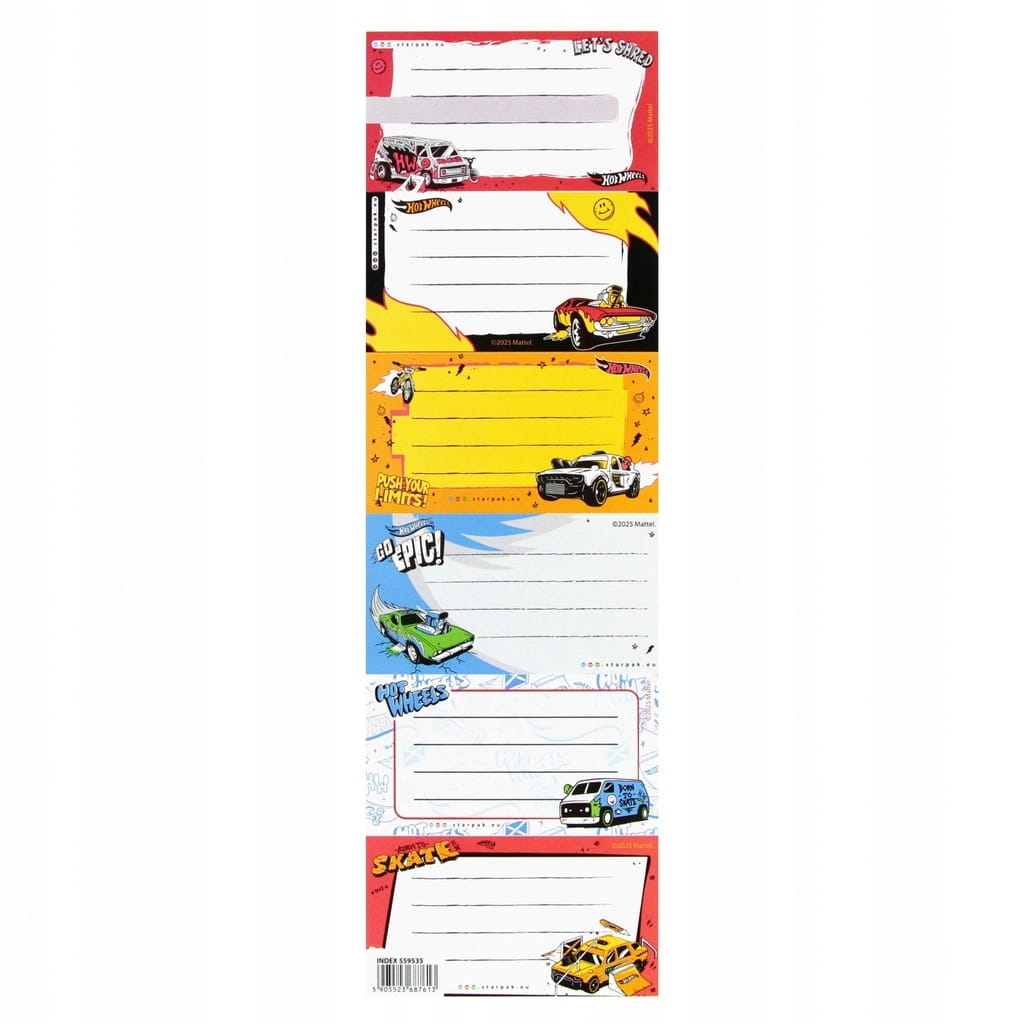 Naklejki na zeszyt Hot Wheels Starpak 6 szt w 1 arkuszu