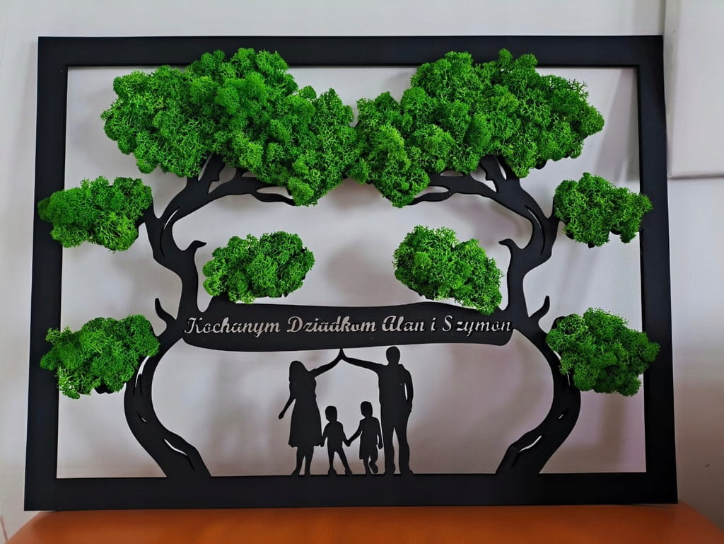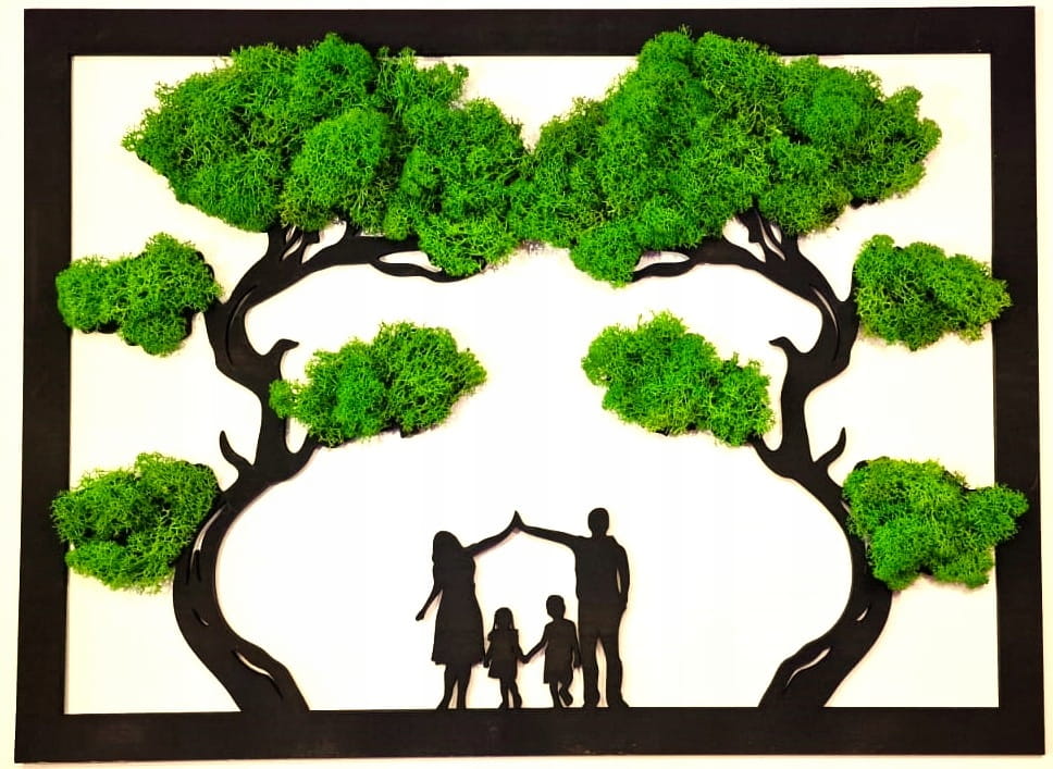 Obraz Dekoracja ścienna Drzewo Rodzina - Wyklejone mchem 66x49cm