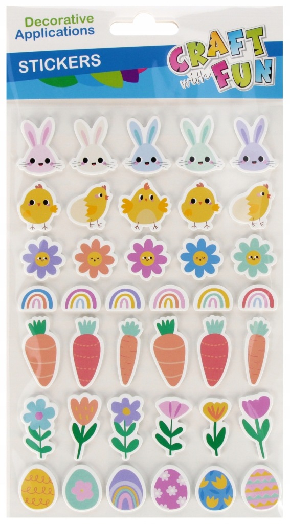 Zalety produktu idealne do zdobienia kartek okolicznościowych, świetnie sprawdzą się również jako element dekoracyjny do pokoju dziecka czy dodatki do prezentów, elementy posiadają samoprzylepną taśmę. Miękkie piankowe naklejki od CRAFT WITH FUN. Żywe kolory, różnorodne kształty i wzory dają praktycznie nieskończoną ilość możliwości ich stosowania.