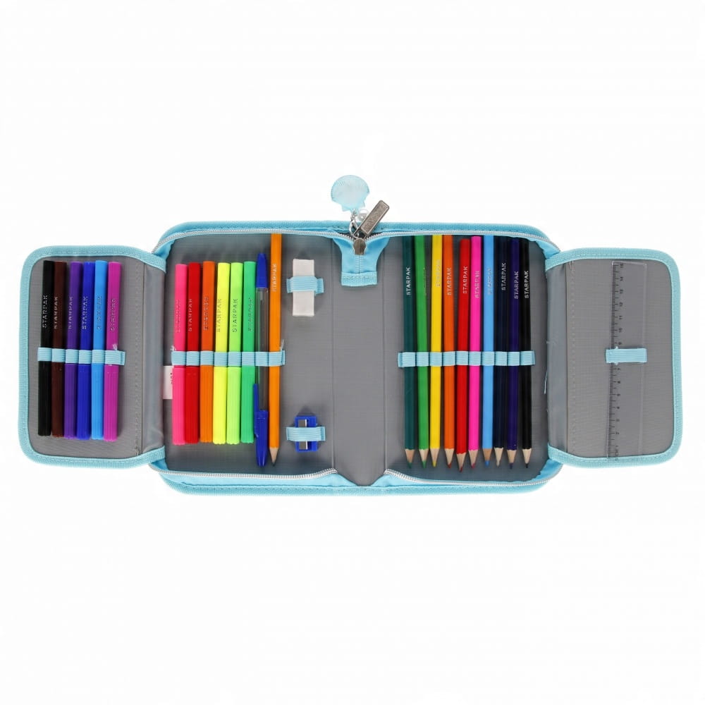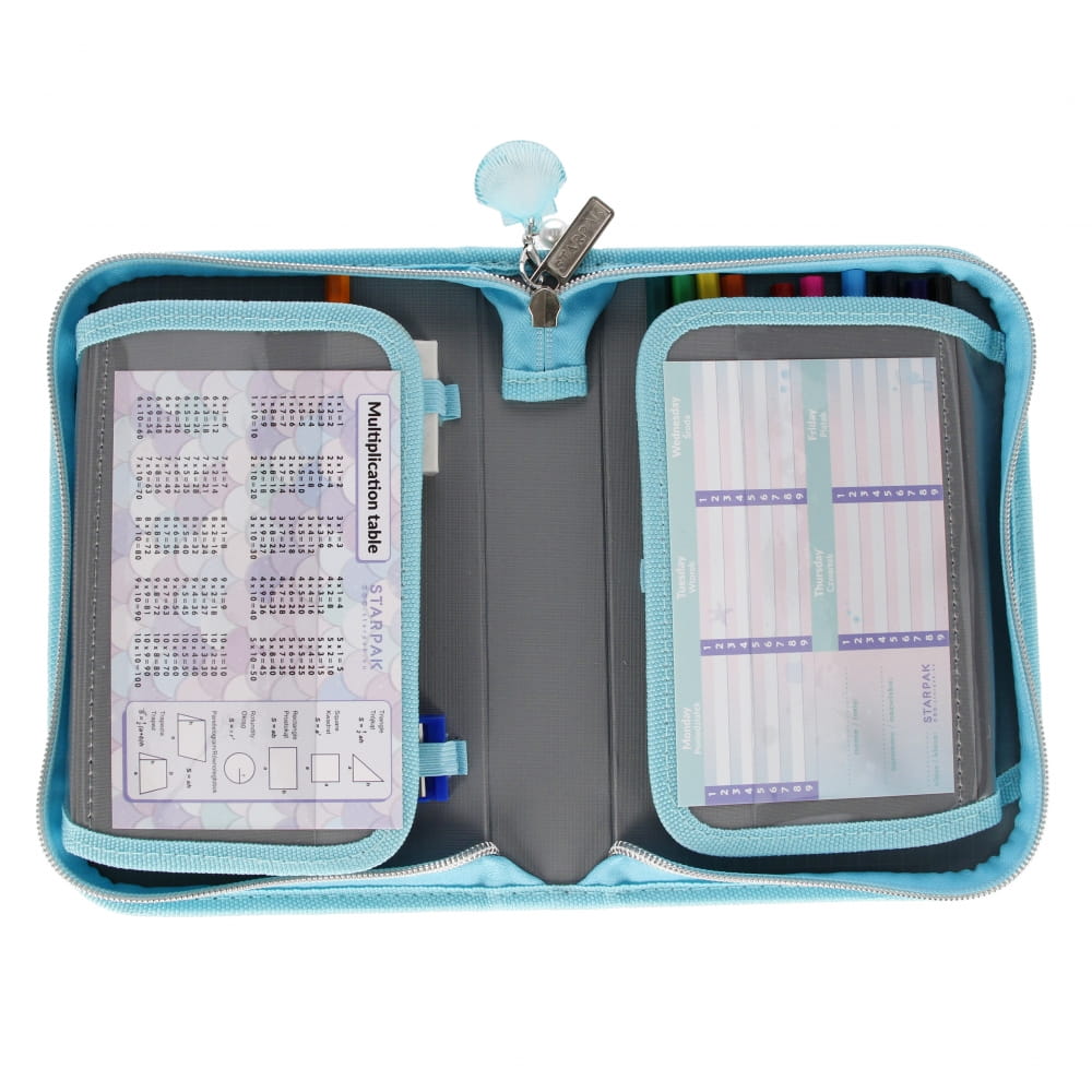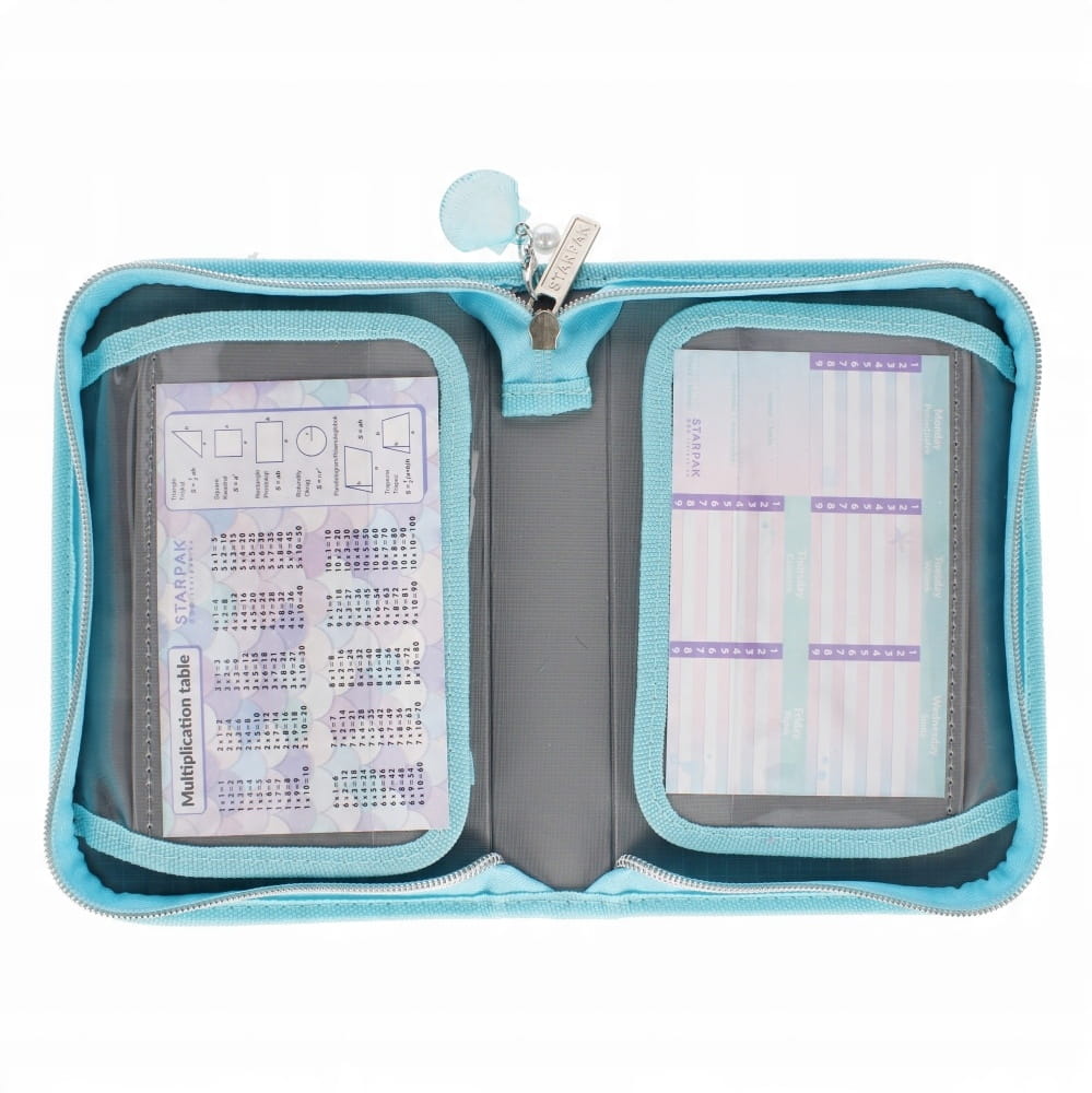 Zalety produktu: 2 rozkładane klapki, odporny materiał, mocny zamek błyskawiczny, trwałe uchwyty na przybory, po złożeniu zajmuje mało miejsca. Duży piórnik z 2 skrzydełkami i elastycznymi uchwytami na przybory szkolne zapinany na mocny zamek. Pozwoli pomieścić wszystkie potrzebne artykuły piśmiennicze i samemu skompletować asortyment. Pomieści flamastry, kredki, pióro, długopis, ołówek, plan zajęć i wiele innych. Piórnik STARPAK jest odporny na uszkodzenia. Można go łatwo rozłożyć na płasko. Dostęp do przyborów jest wtedy bardzo łatwy. Po złożeniu jest mały i spokojnie zmieści się w każdym plecaku lub worku. Zapoznaj się również z innymi produktami STARPAK z serii Syrenka. Wymiary/waga: dł. x wys. x gł. cm : 21x14x4, rozłożony szer. cm : 31 cm, waga produktu kg : 0,19 kg. Produkt jest wyrobem tekstylnym. Przeznaczony dla dzieci w wieku: 3 . Piórnik pakowany w folię. Pakowanie iner 12szt, karton zbiorczy 48szt.