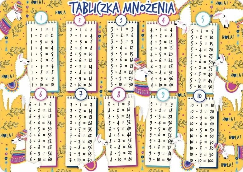 Podkładka na biurko - Tabliczka mnożenia Lamy