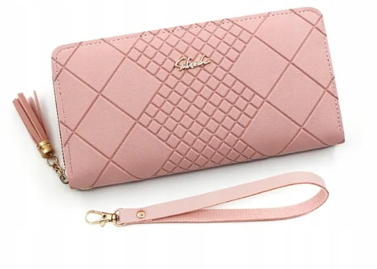 Portfel zapinany na zamek damski pojemny portmonetka PREZENT różowy
