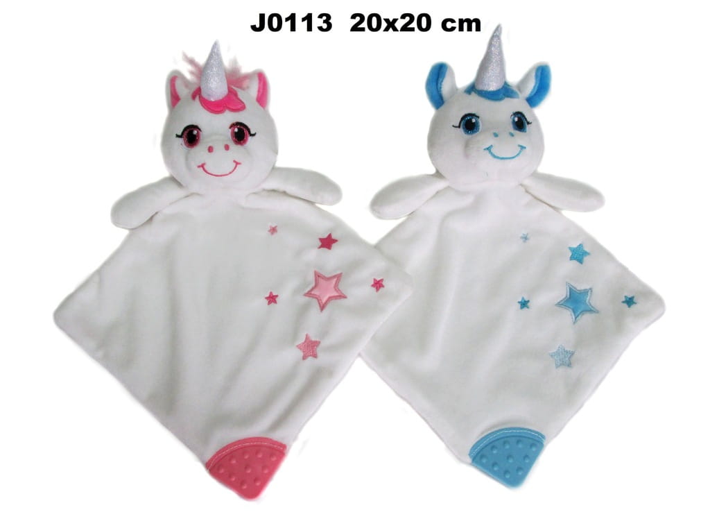 ✅Na jednym z rogów kocyka jest głowa jednorożca, a na przeciwnym gryzak dla maluszka.