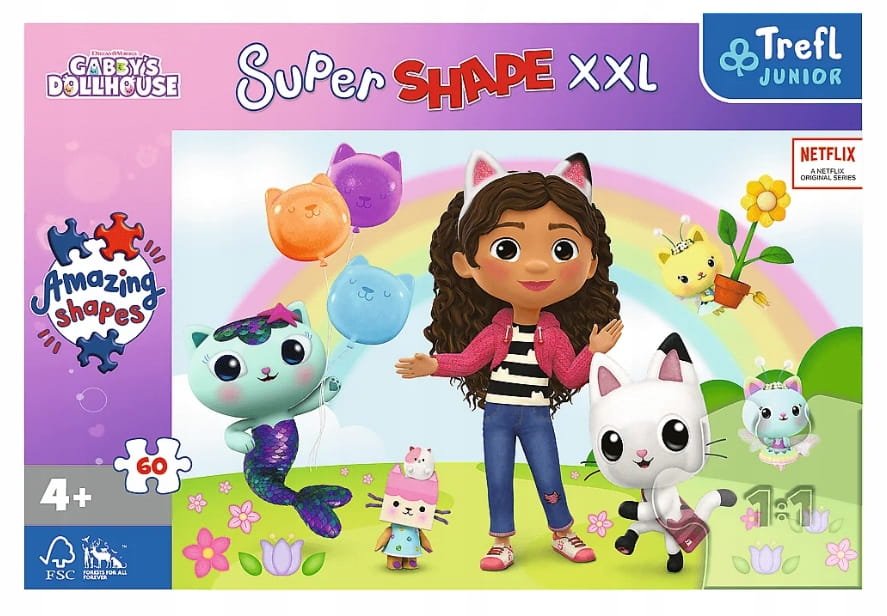 Puzzle 60elem Super Shape XXL Weseli Przyjaciele Koci domek Gabi PREZENT