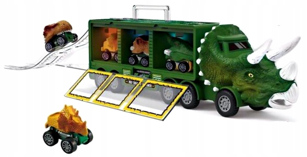 - Samochód dinozaur ciężarówka + 3 małe samochodziki w środku