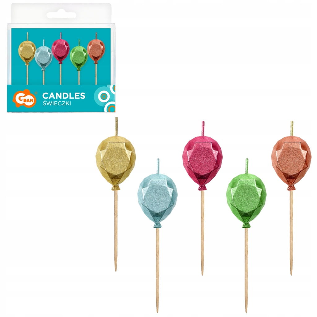 Świeczki Pikery BALONIKI Metaliczne Urodziny 5szt.