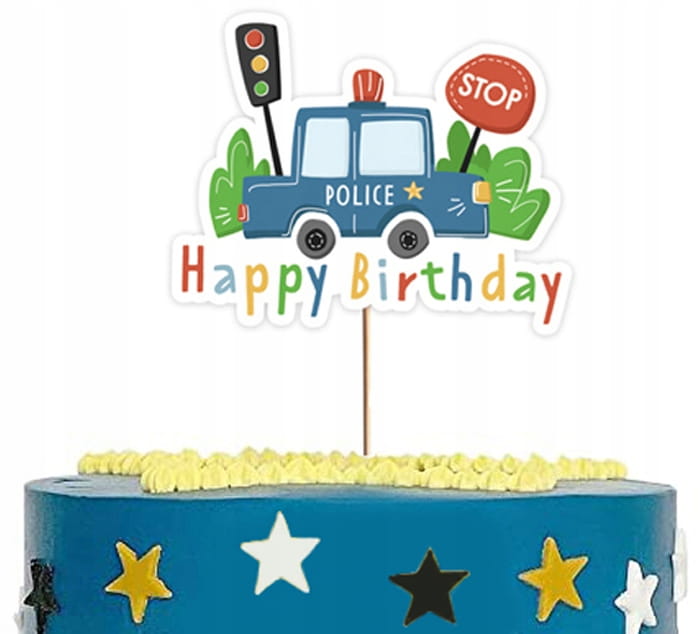Piękny topper na przyjęcie urodzinowe dla małego policjanta.