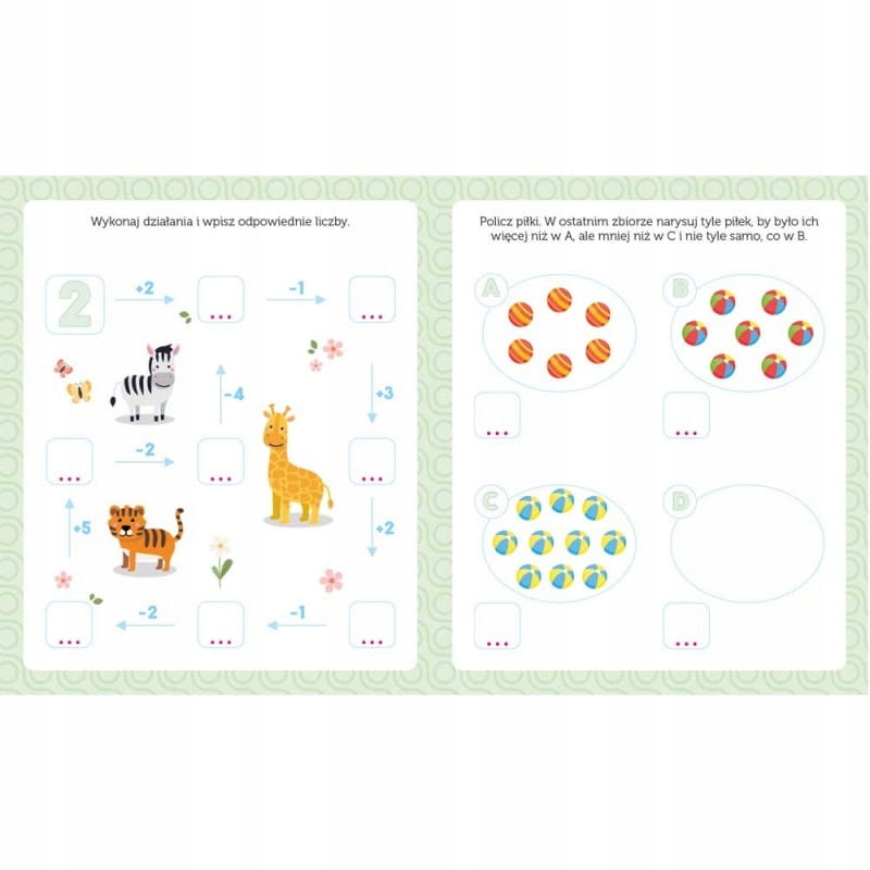 „Wesołą matematykę dla smyka” polecamy do nauki pisania liczb oraz pierwszych ćwiczeń w liczeniu. • W szerokich liniach dziecko pisze liczby zgodnie z podanym wzorem. • Łączenie elementów i rysowanie po liniach to doskonałe ćwiczenie małej rączki. • Dołączony pisak i specjalny papier umożliwiają ścieranie i wielokrotne pisanie. • Zróżnicowane zadania i barwne ilustracje zachęcają dzieci do pracy z książką.