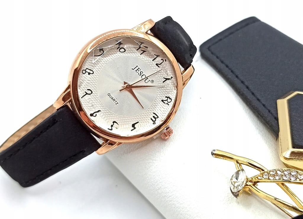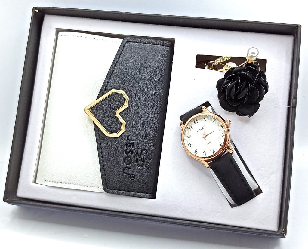 Zestaw Prezentowy dla Kobiety – Portfel, Broszka i Zegarek w Eleganckim Pudełku