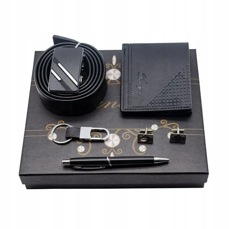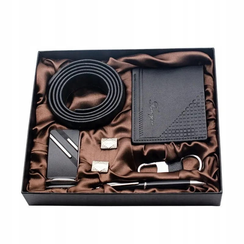 ZESTAW PREZENTOWY DLA MĘŻCZYZNY CZARNY PASEK BRELOK DŁUGOPIS SPINKI PORTFEL