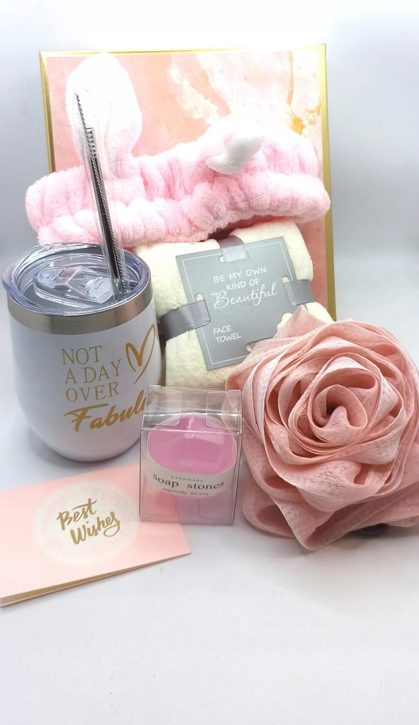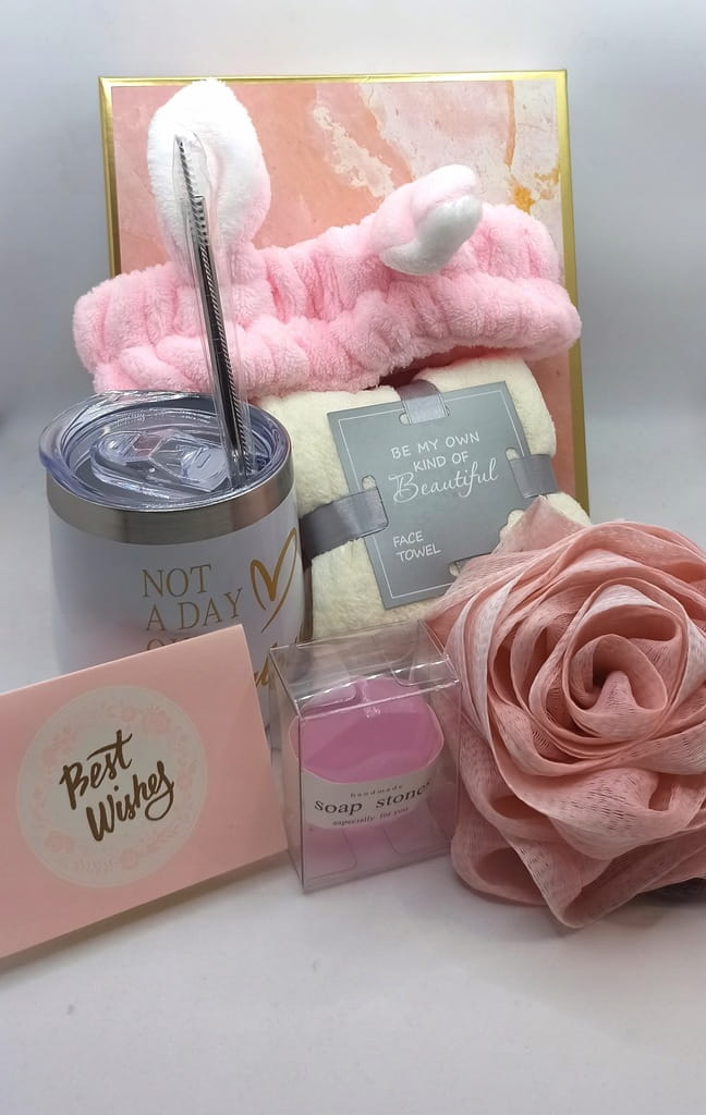 ZESTAW PREZENTOWY KUBEK TERMICZNY MYDEŁKO MYJKA RECZNIK OPASKA PREZENT SPA