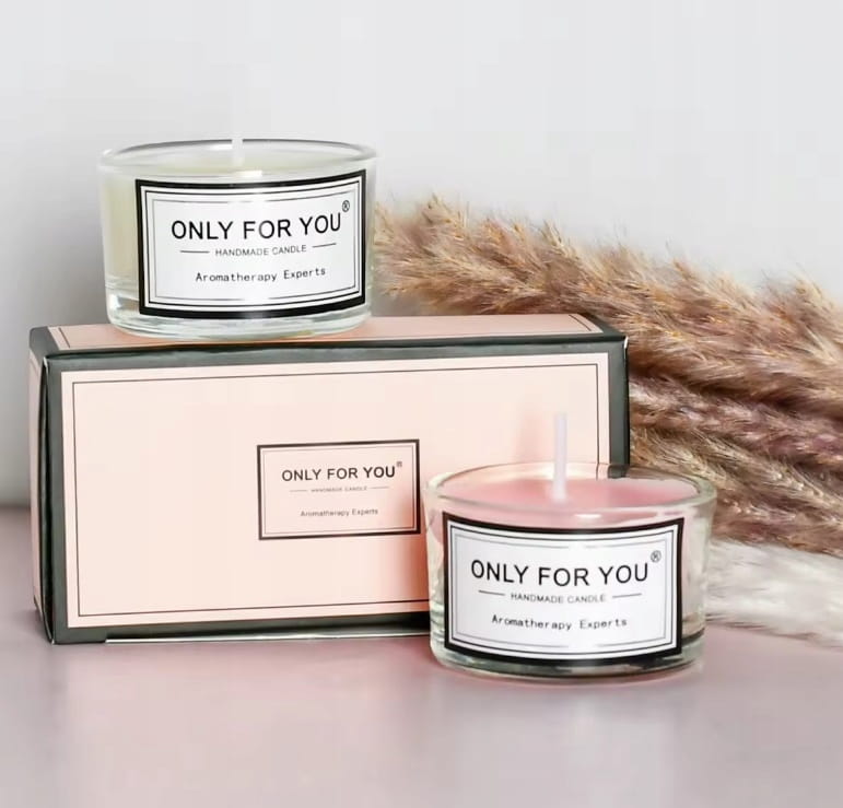Świeczki są wykonane z odżywczych i kojących składników, takich jak olejek eteryczny z kwiatów i 100% wosk sojowy.