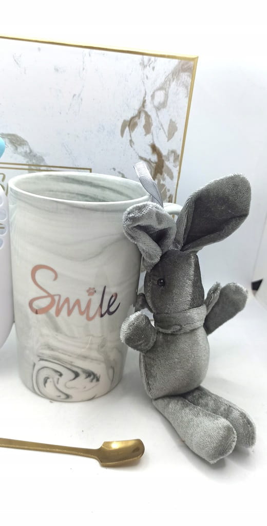 ZESTAW PREZENTOWY KUBEK ZE ZŁOTĄ ŁYŻECZKĄ WIATRACZEK KRÓLICZEK PREZENT