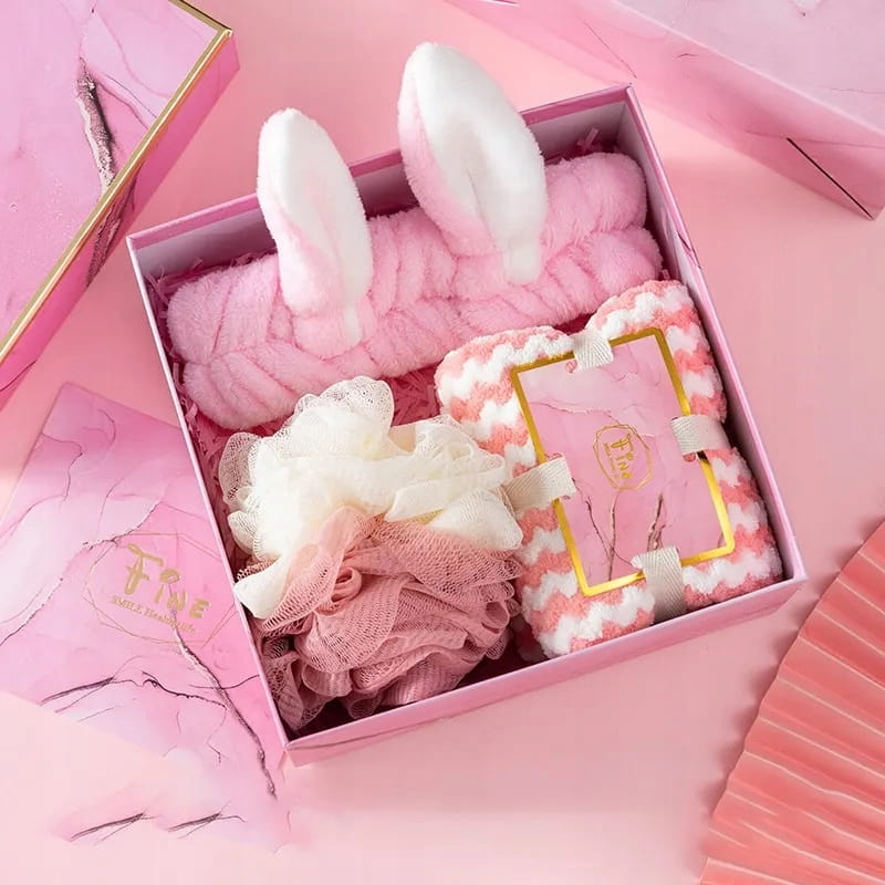 ZESTAW PREZENTOWY MYJKA KĄPIELOWA RĘCZNICZEK OPASKA SPA PREZENT DLA KOBIET