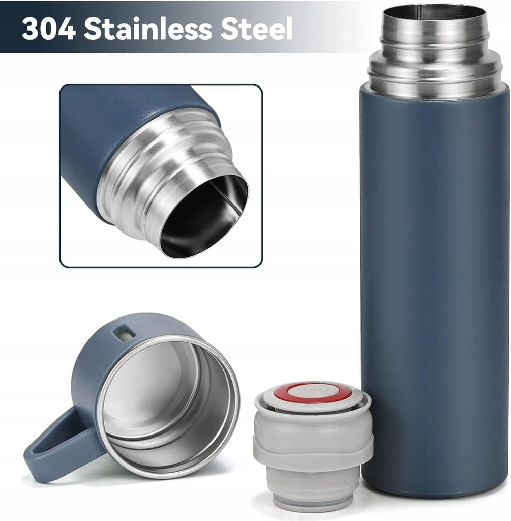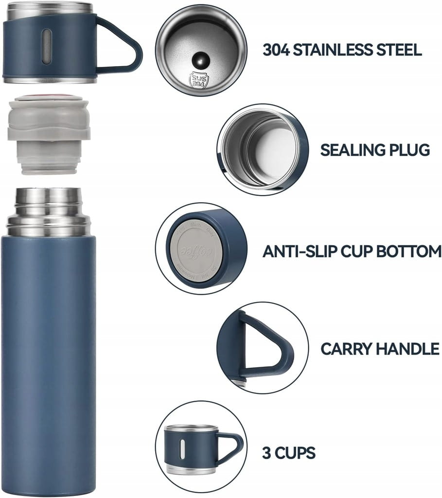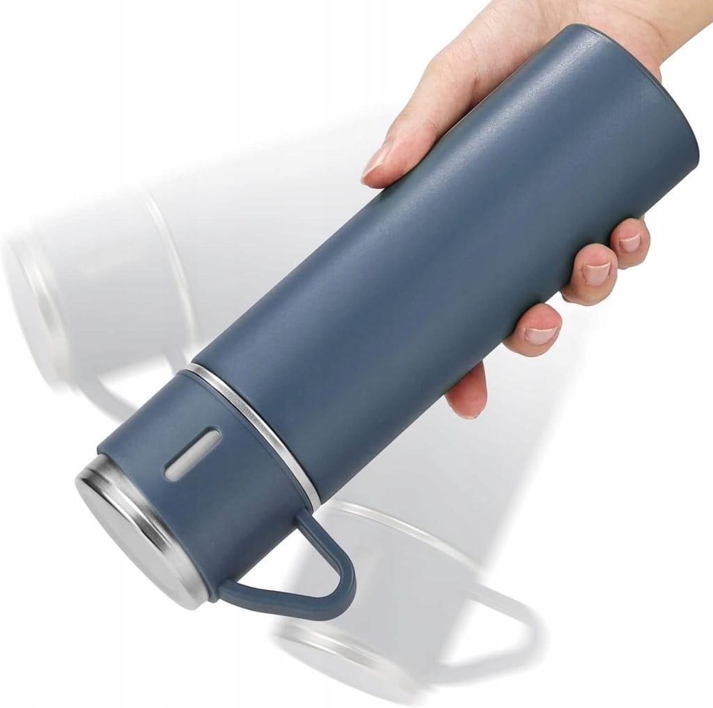 ZESTAW PREZENTOWY TERMOS NIEBIESKI 500ML+TRZY KUBKI PREZENT! URODZINY
