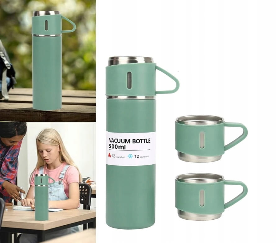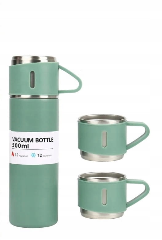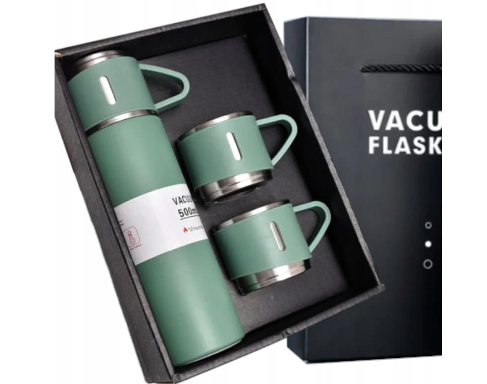 ZESTAW PREZENTOWY TERMOS ZIELONY 500ML+TRZY KUBKI PREZENT! URODZINY