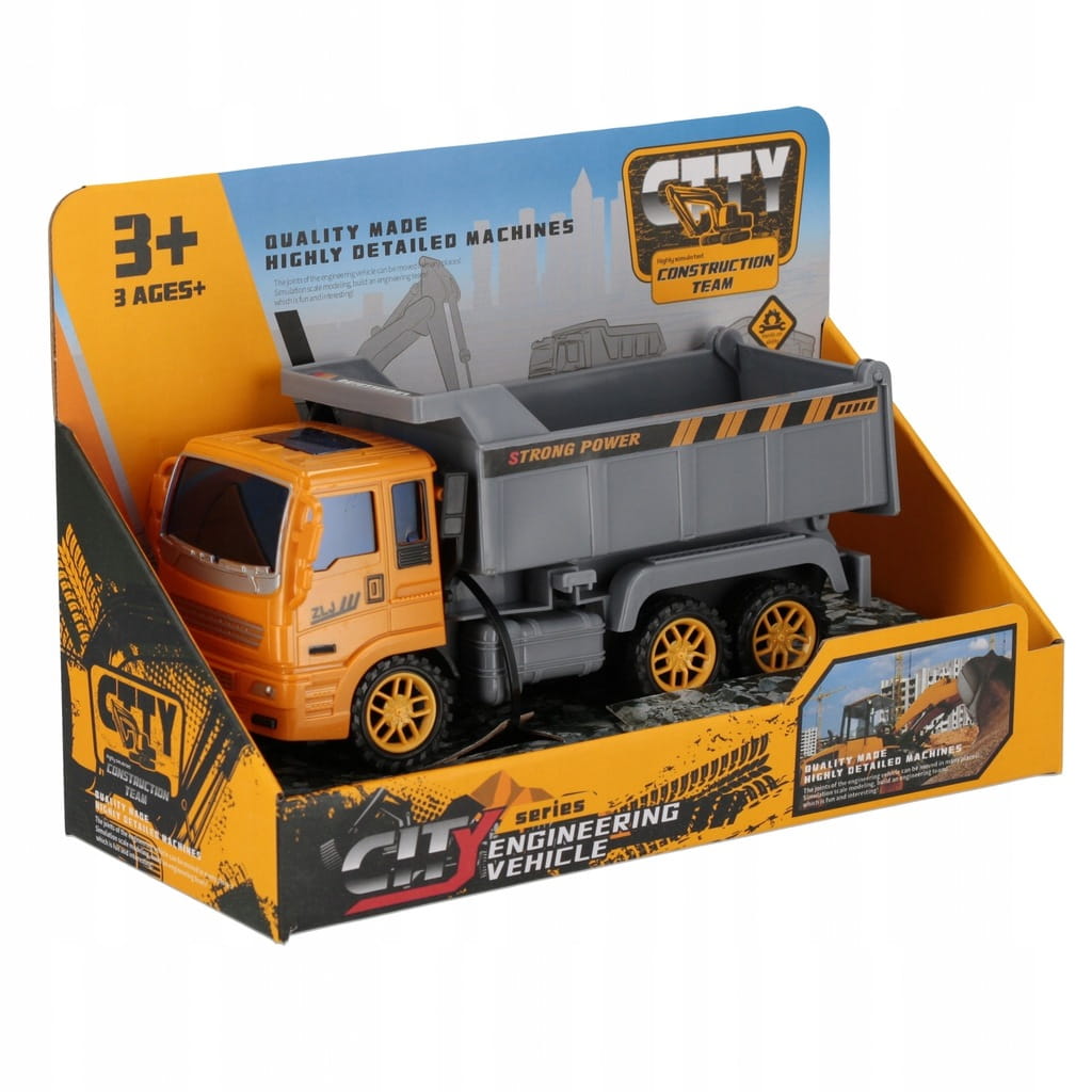 Wywrotka to lekki, zwrotny i wytrzymały pojazd o długości 19 cm w atrakcyjnej kolorystyce. Pojazd posiada ruchomą skrzynię ładunkową, z pomocą której mali budowlańcy będą mogli przewieźć i zrzucić ładunek na placu budowy.