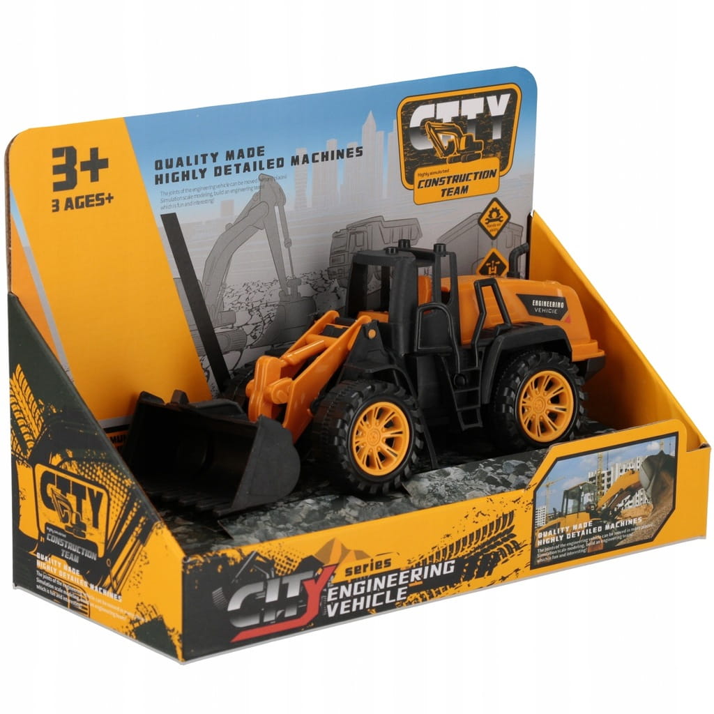 Żadna budowa nie obejdzie się bez koparki. Wykop ziemi pod fundamenty, przeładunek materiałów budowlanych, gruzu - to tylko część pracy, którą wykonują te maszyny na placu budowy. Koparka jest pojazdem lekkim, zwrotnym i wytrzymałym o długości 21 cm i atrakcyjnej kolorystyce. Zabawka posiada ruchomą podstawę z kabiną operatora oraz ruchome ramię i łyżkę. Dołączone do pojazdu podpory stabilizują i zabezpieczają koparkę w trakcie pracy.