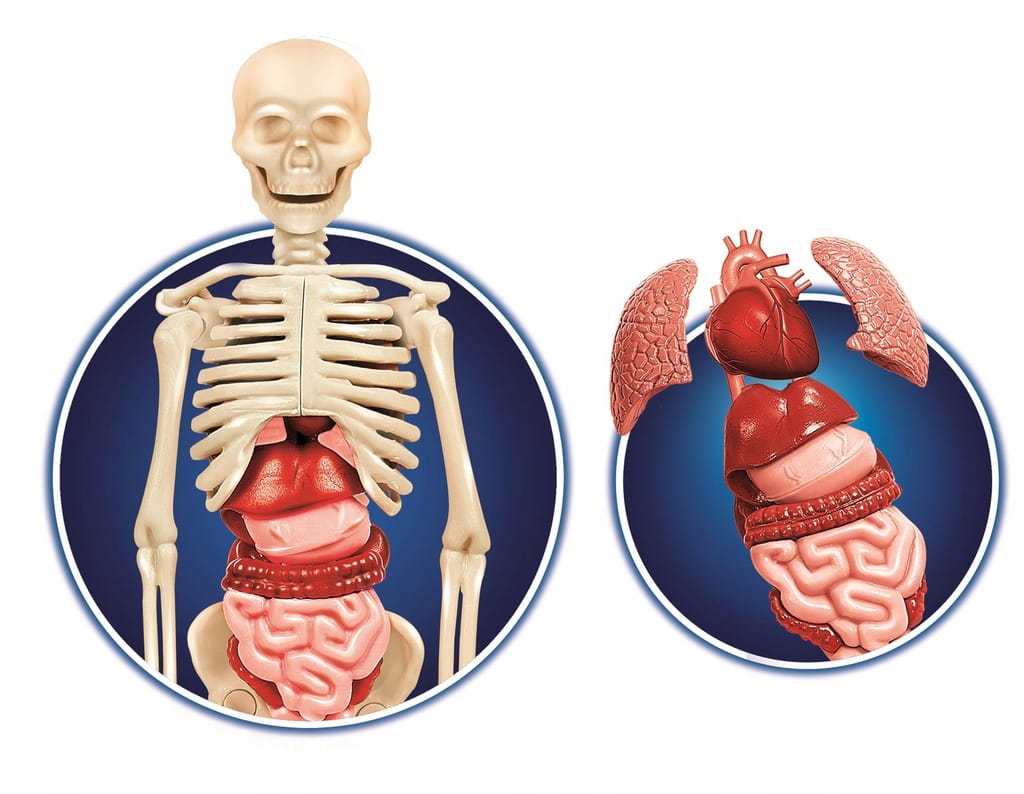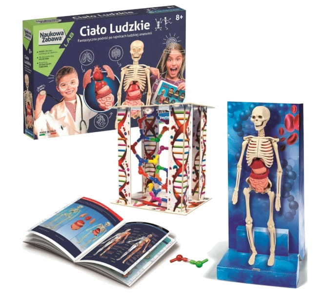 Ciało Ludzkie – zestaw edukacyjny od Clementoni to interaktywny zestaw, który pozwala dzieciom odkrywać tajniki anatomii w angażujący i przystępny sposób. Zestaw umożliwia zbudowanie szkieletu człowieka, modeli organów wewnętrznych oraz modelu DNA, co stymuluje ciekawość, rozwija wiedzę biologiczną i wspiera naukę poprzez zabawę.