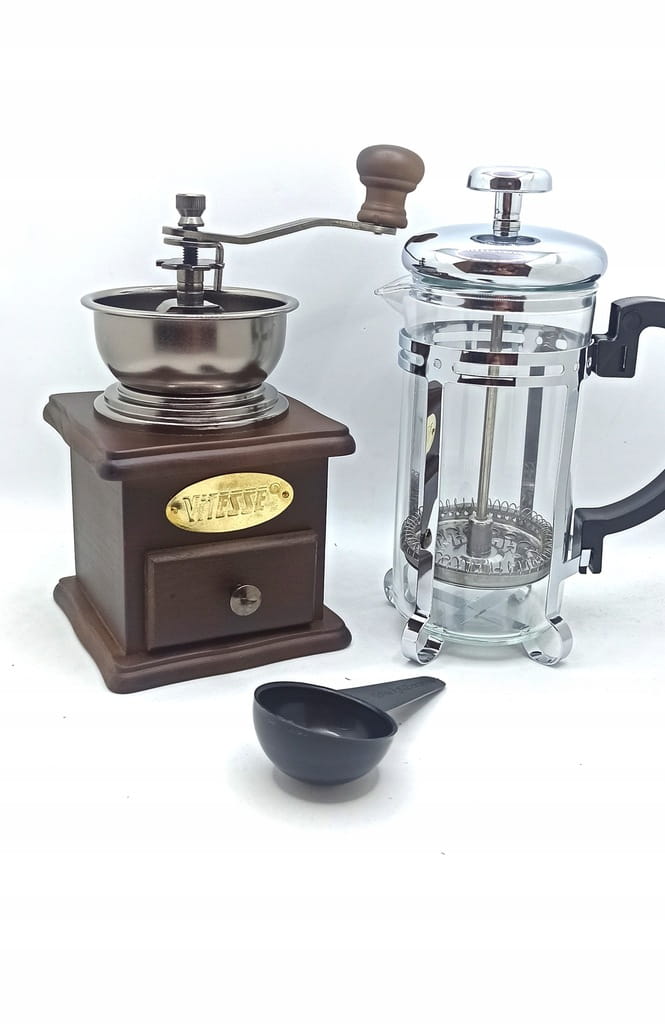 Zawartość zestawu: młynek do kawy + zaparzacz + miarka