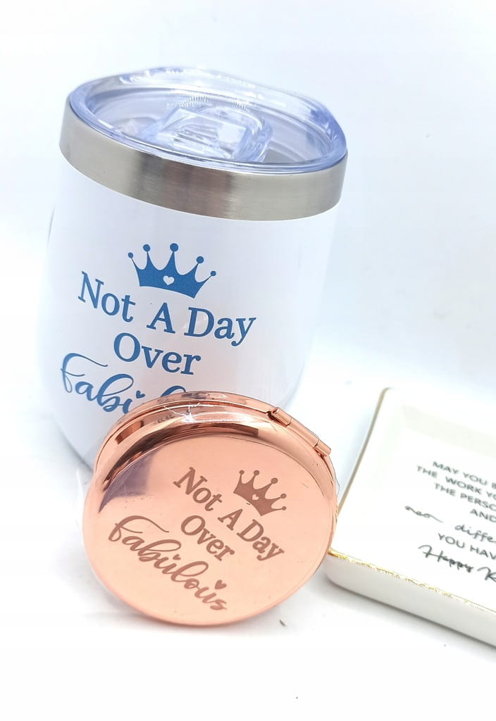 Termiczny kubek ze stali nierdzewnej z rurką – z napisem „Not a Day Over Fabulous”, utrzymuje napój w optymalnej temperaturze.