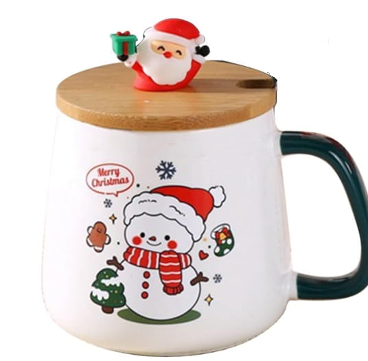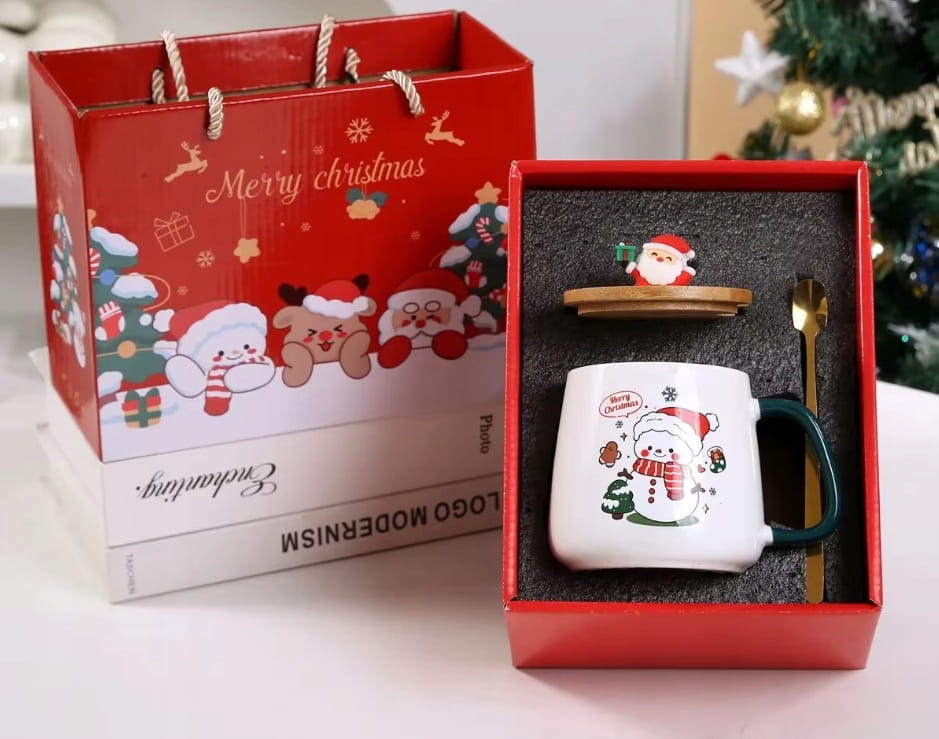 Zestaw prezentowy na święta ceramiczny kubek z pokrywką i łyżką Bałwanek