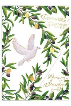 Karnet z kieszonką na pieniędze w formacie A5, składany z trzech. Złocony i tłoczony, teksy życzeń w środku. Wydrukowany na wysokiej jakości papierze. W zestawie koperta.